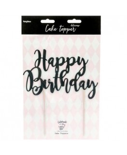 PARTY DECO CAKE TOPPER HAPPY BIRTHDAY NERO